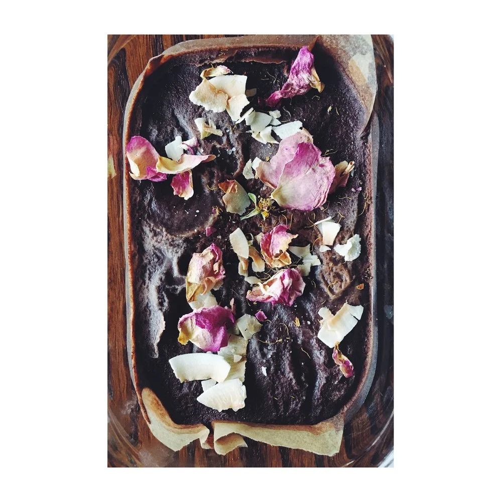 Over the next few weeks I found myself splurging on this $8 chocolate bar way too often and realized I needed to find a way to make it myself. Luckily, Cassie over at the lovely Wholefully blog already figured out a really nice base recipe which I used to create this adaptation. I had some pretty rose petals around and knew they'd be the perfect topping. The toasted coconut, roses, and sea salt worked really well together.